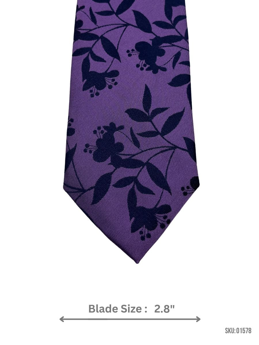 This modern floral jacquard tie combines a vibrant purple base with striking black floral patterns. The slim 2.8″ blade design is perfect for fashion-forward professionals looking to stand out at work or special events. Durable fabric ensures long-lasting wearability.