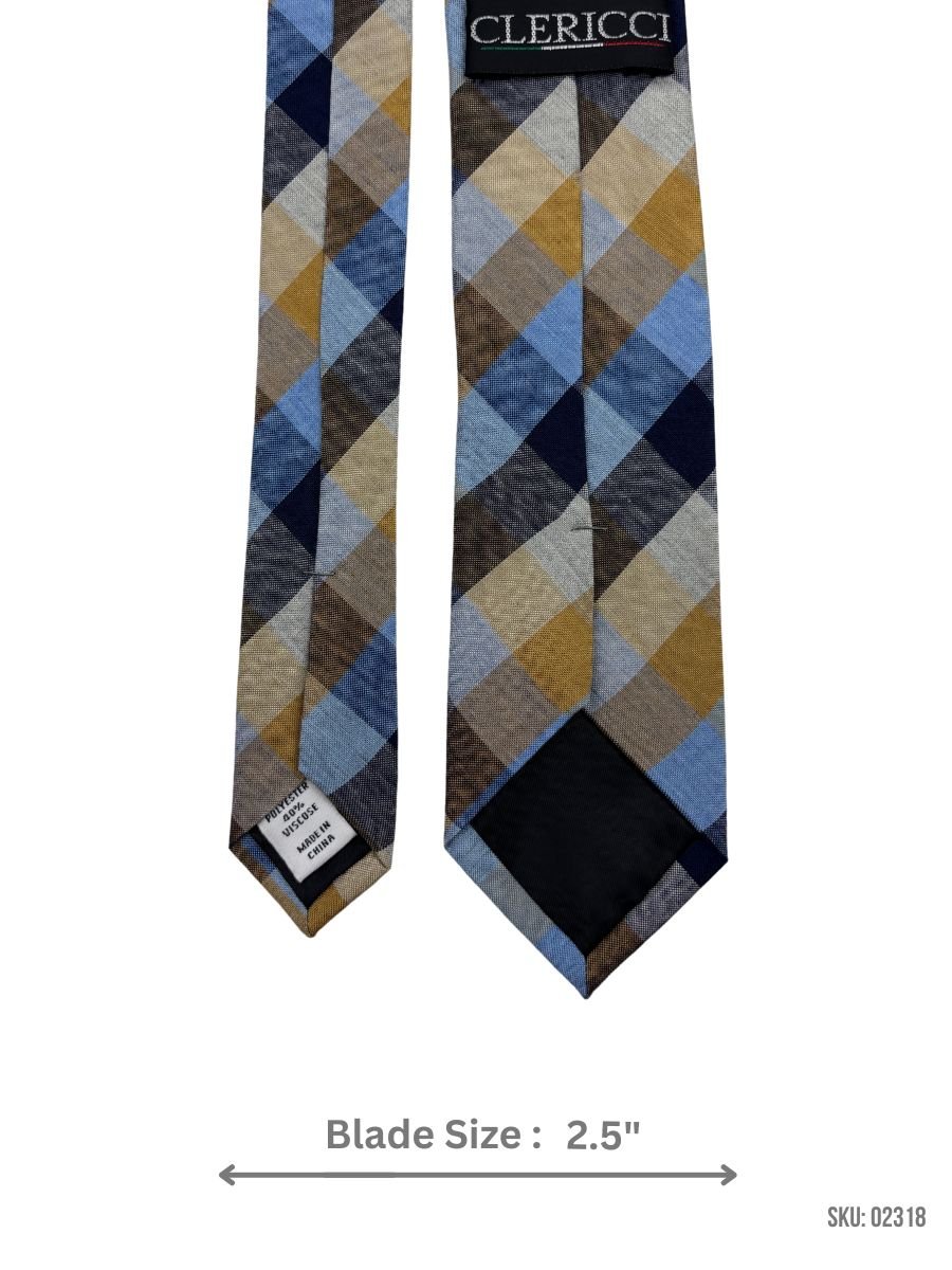 This plaid tie combines shades of blue and brown, offering a unique yet versatile accessory for your wardrobe. The combination of colors creates a sophisticated and balanced look, making it suitable for both professional and casual events.