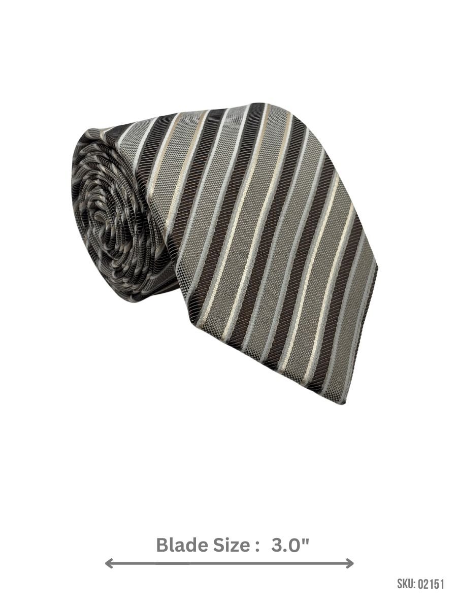 This multicolored striped tie features a geometric pattern that adds depth and interest to your outfit. The 3.0-inch blade width offers a sleek, contemporary design that works well for business meetings or semi-formal events. It pairs perfectly with a variety of shirts and suits for a stylish, modern look.