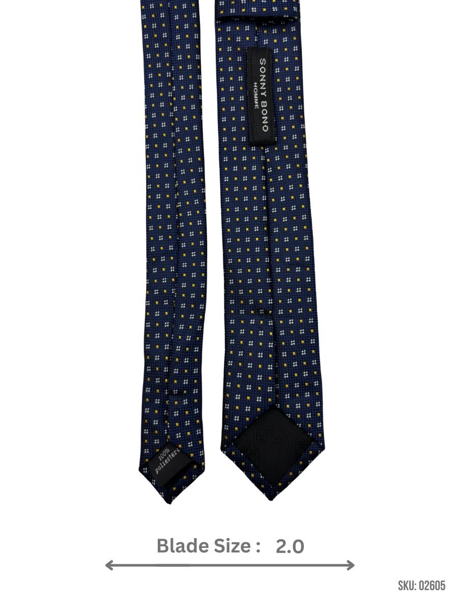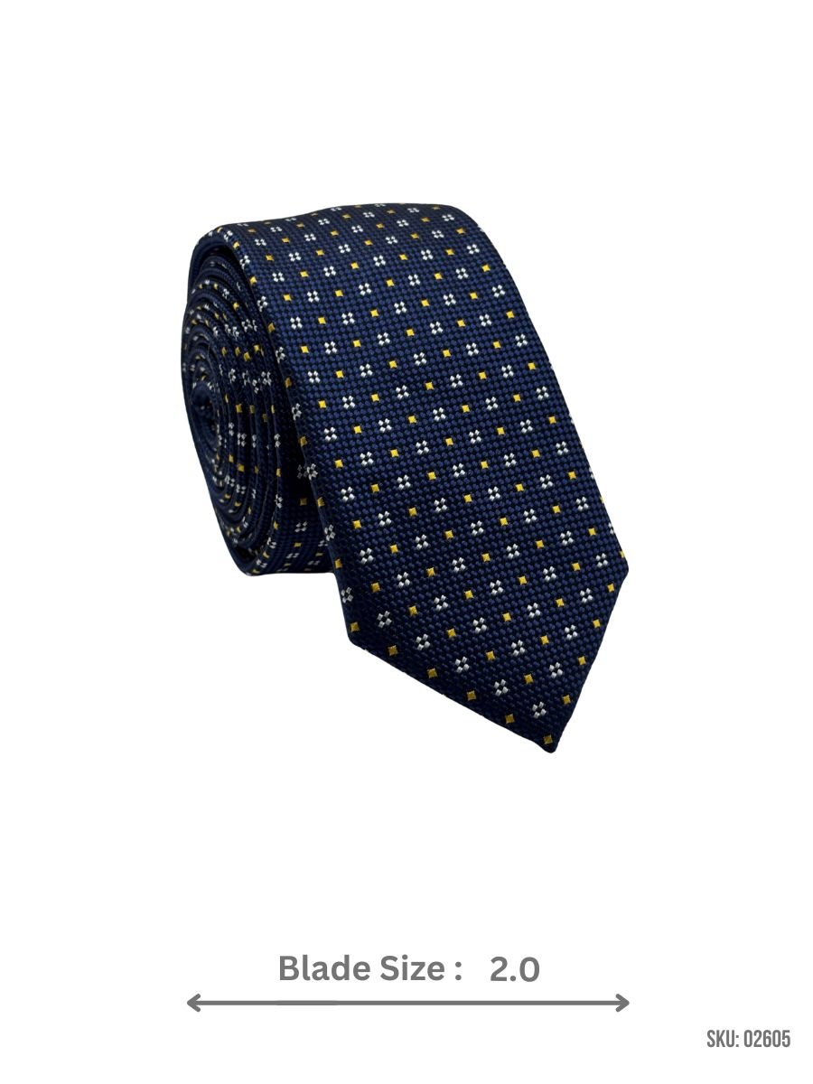 This tie combines deep navy with a bold yellow diamond pattern, offering a striking and modern design. Whether for business or a night out, its unique pattern makes it a standout accessory for any wardrobe.
