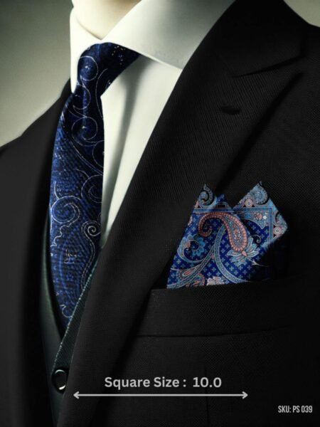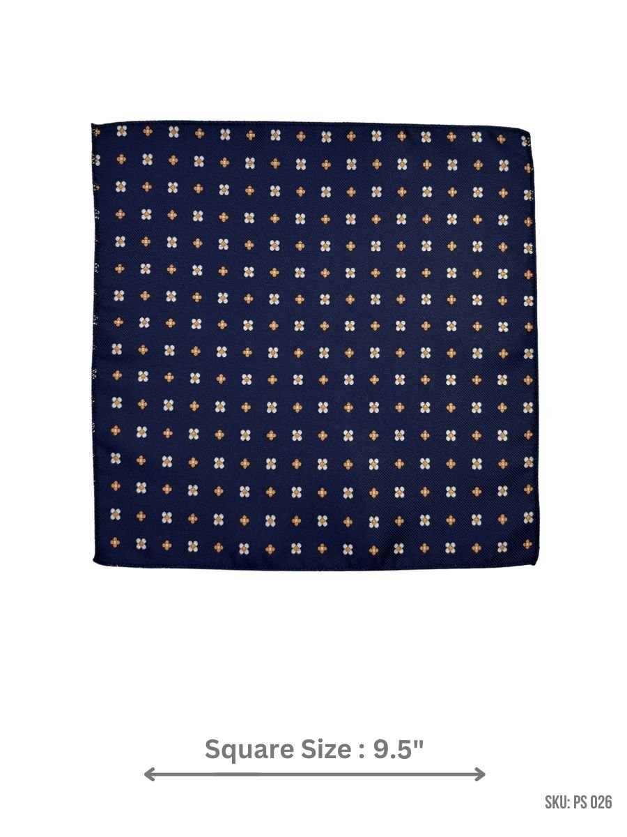 Elevate your outfit with this elegant navy blue pocket square. Designed with a refined floral pattern in golden and white tones, this pocket square adds a touch of sophistication to your suit or blazer. The compact 9.5-inch size makes it versatile and easy to fold into various styles, whether you’re heading to a wedding, business meeting, or a casual gathering. Made from premium-quality fabric, it’s soft, durable, and enhances any formal or semi-formal attire. A stylish addition to any gentleman’s wardrobe.