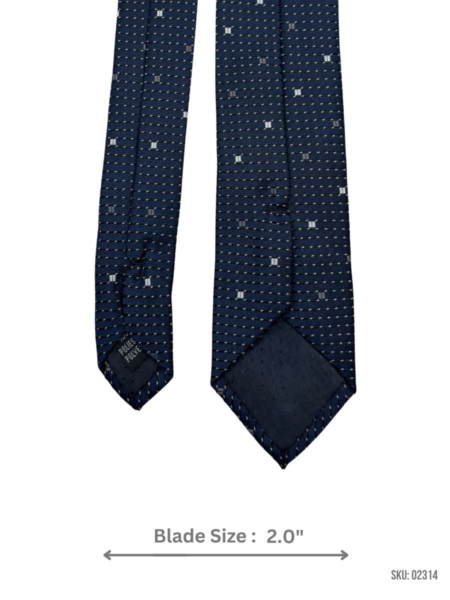 This navy tie showcases a refined geometric pattern in silver and grey, offering a modern and professional look. Ideal for both formal and business wear, its elegant design ensures it complements a wide variety of suit styles, adding a sophisticated touch to your outfit.