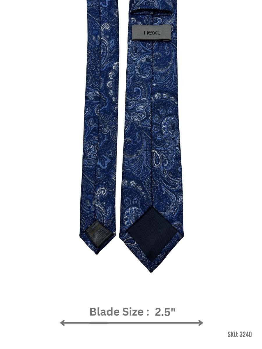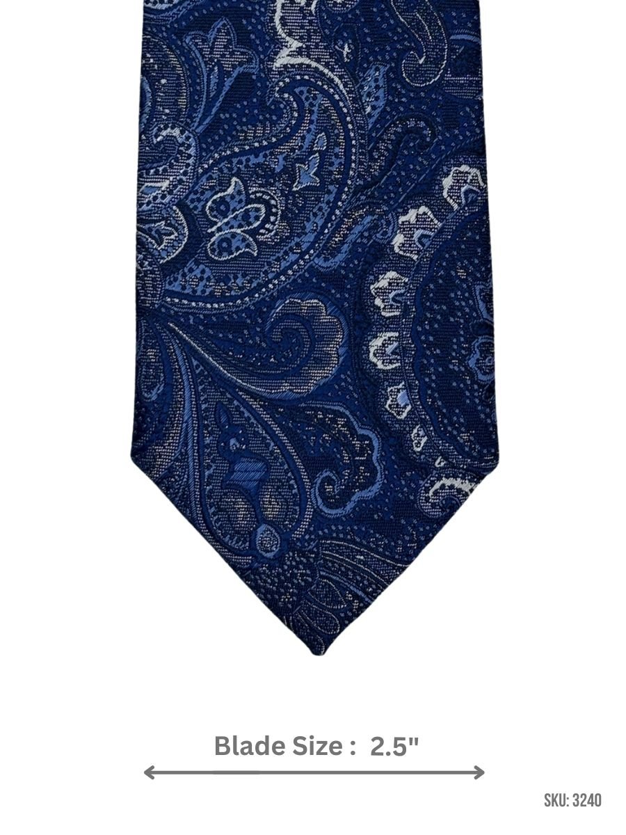 Navy Blue Tie with Light Blue and Silver Paisley Pattern