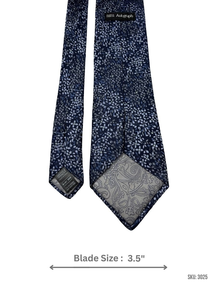 Navy Blue Tie with Light Blue & Grey Leaf Floral Pattern