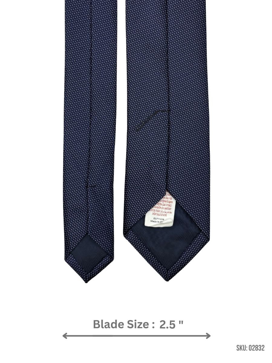 This navy blue tie showcases a compact micro dot pattern that adds understated texture while maintaining a formal appearance. Ideal for daily office wear and business attire.
