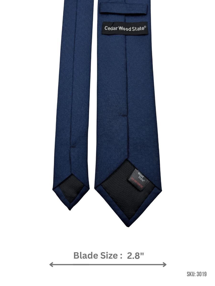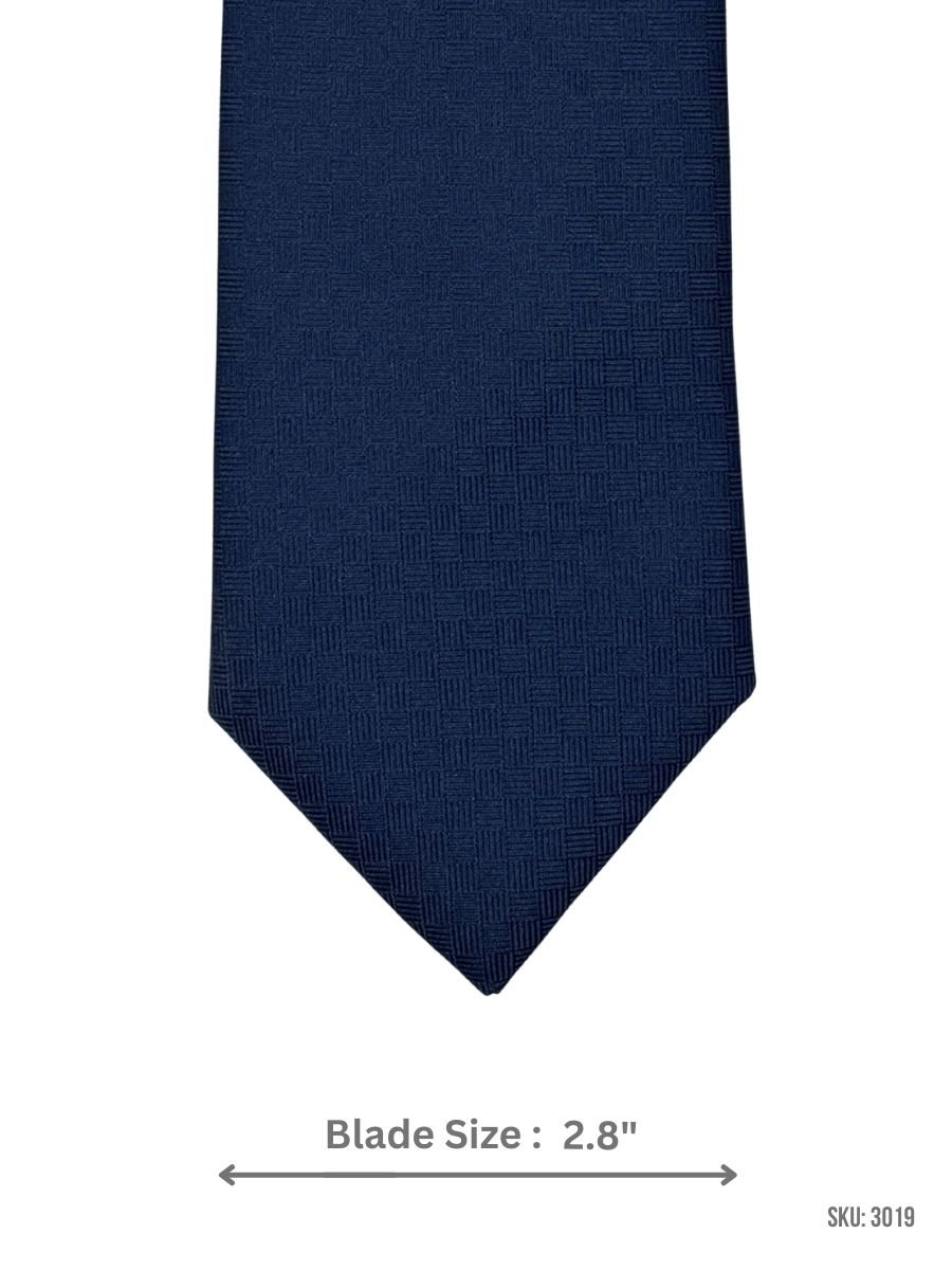 This navy blue tie is finished with a refined tonal basketweave-style pattern that adds depth without looking busy. It’s a dependable option for business and formal occasions, pairing effortlessly with white, light blue, and grey shirts for a clean, modern look.