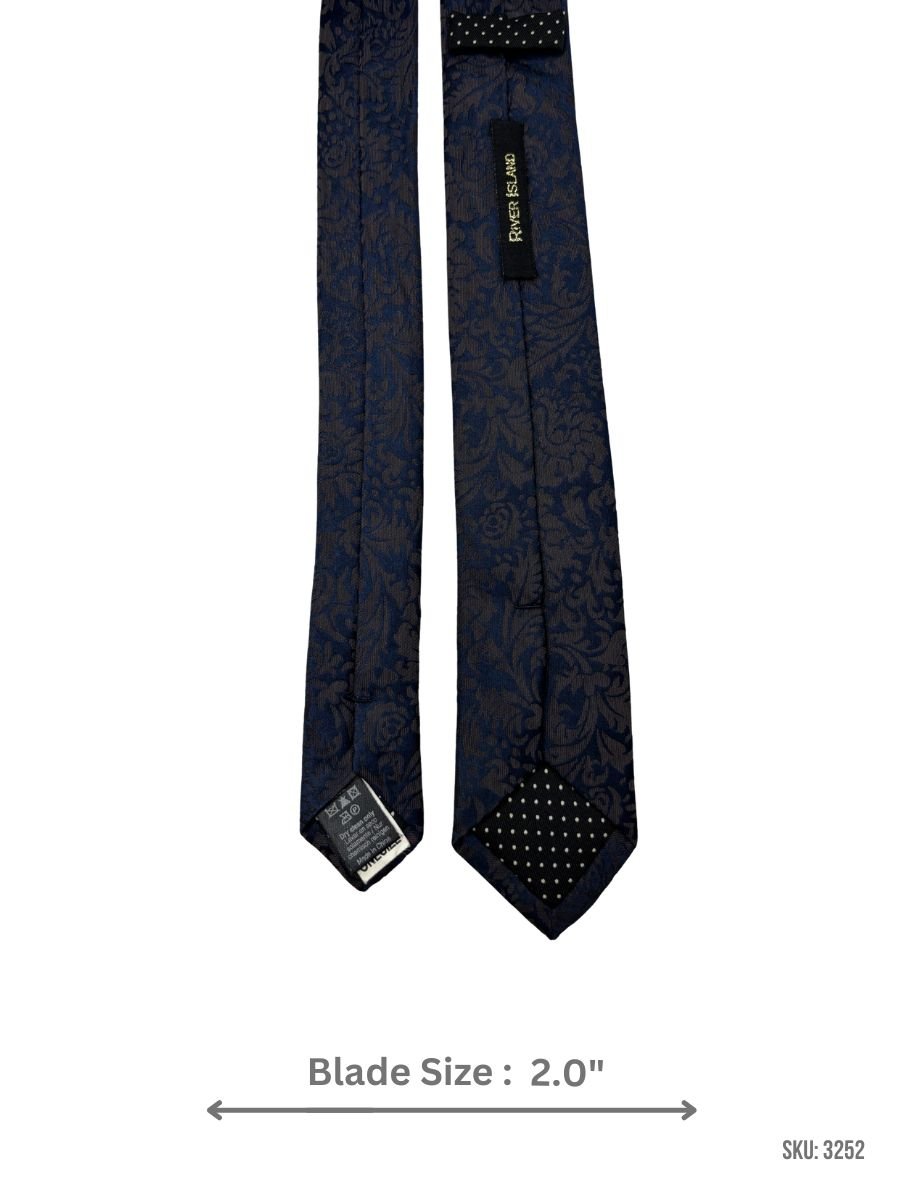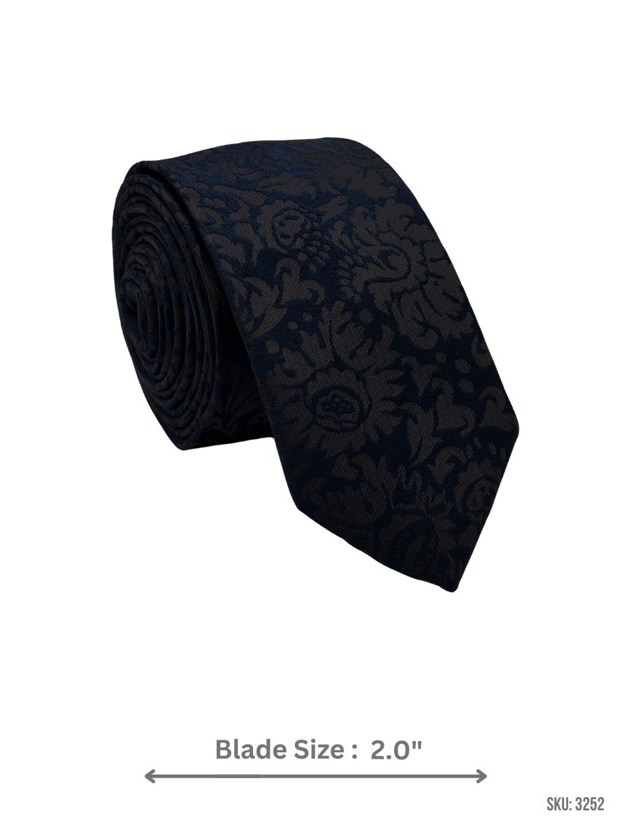 A refined navy blue tie featuring a tone-on-tone floral jacquard pattern that adds depth without standing out too loudly. Ideal for office wear, formal events, and evening styling. Blade size: 2.0″.