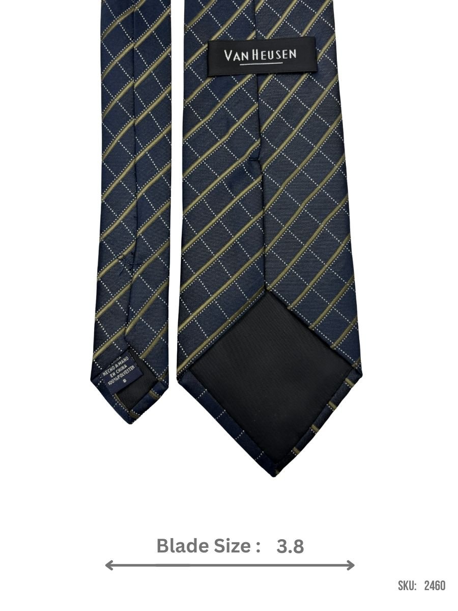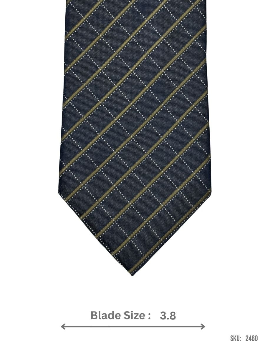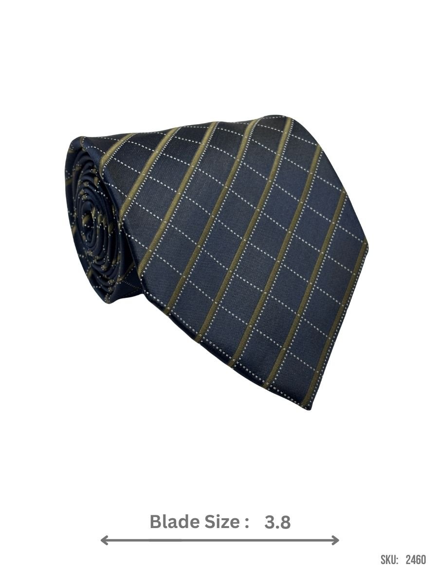 Add a polished touch to your formal attire with this navy plaid checkered tie. The blend of navy and olive colors creates a striking contrast, while the crisscross pattern gives it a refined and sophisticated look. Perfect for business meetings or formal events, this tie will effortlessly enhance your wardrobe.