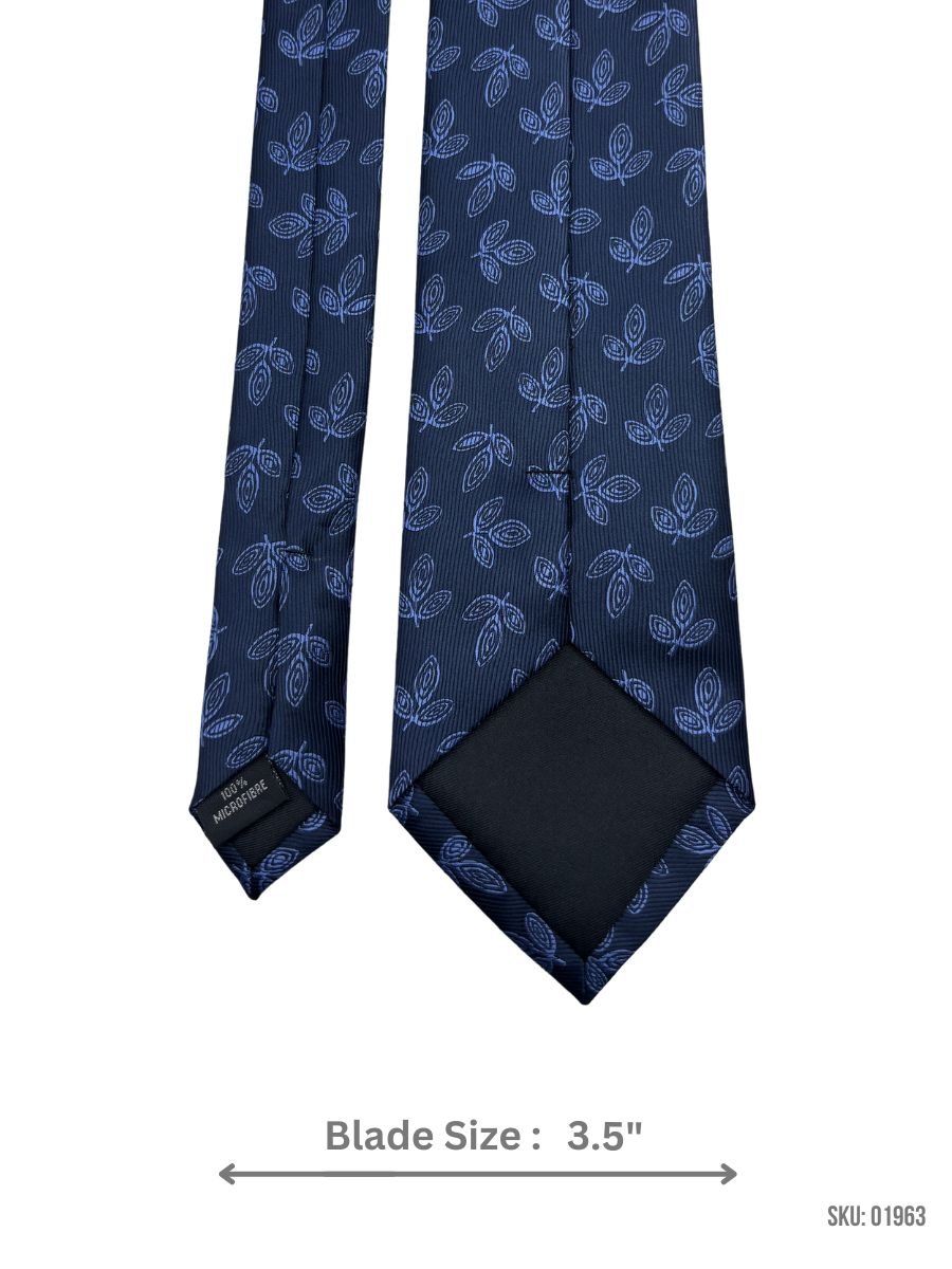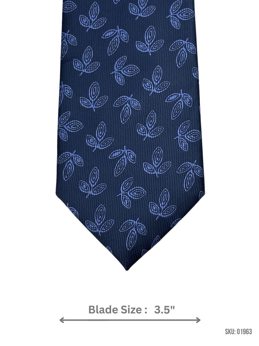 This navy tie showcases a striking blue leaf pattern, blending modern design with timeless elegance. The 3.5-inch blade width offers a traditional fit, suitable for formal events or professional attire. Made from durable and premium materials, this tie ensures a smooth and polished finish.