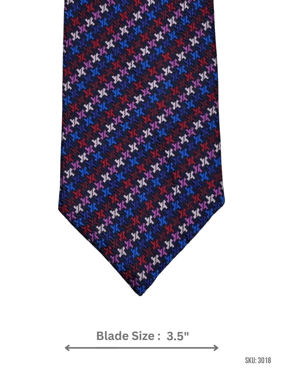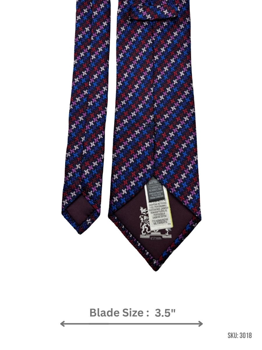 Navy Tie with Red, Blue, Purple & White Houndstooth Pattern
