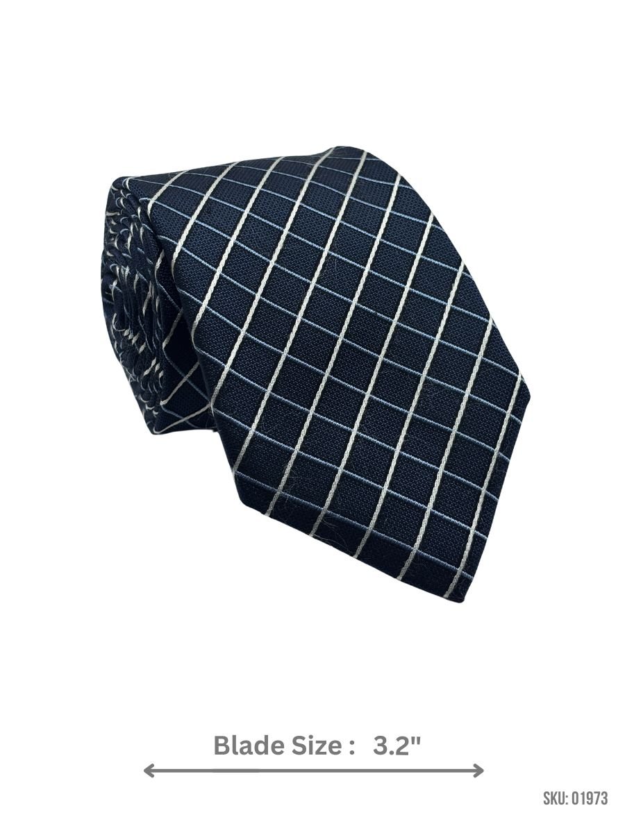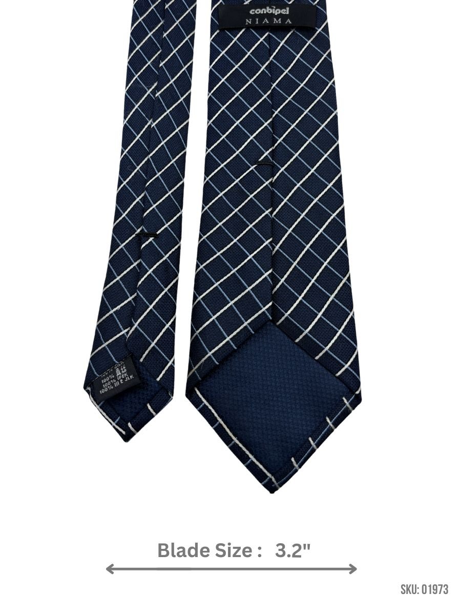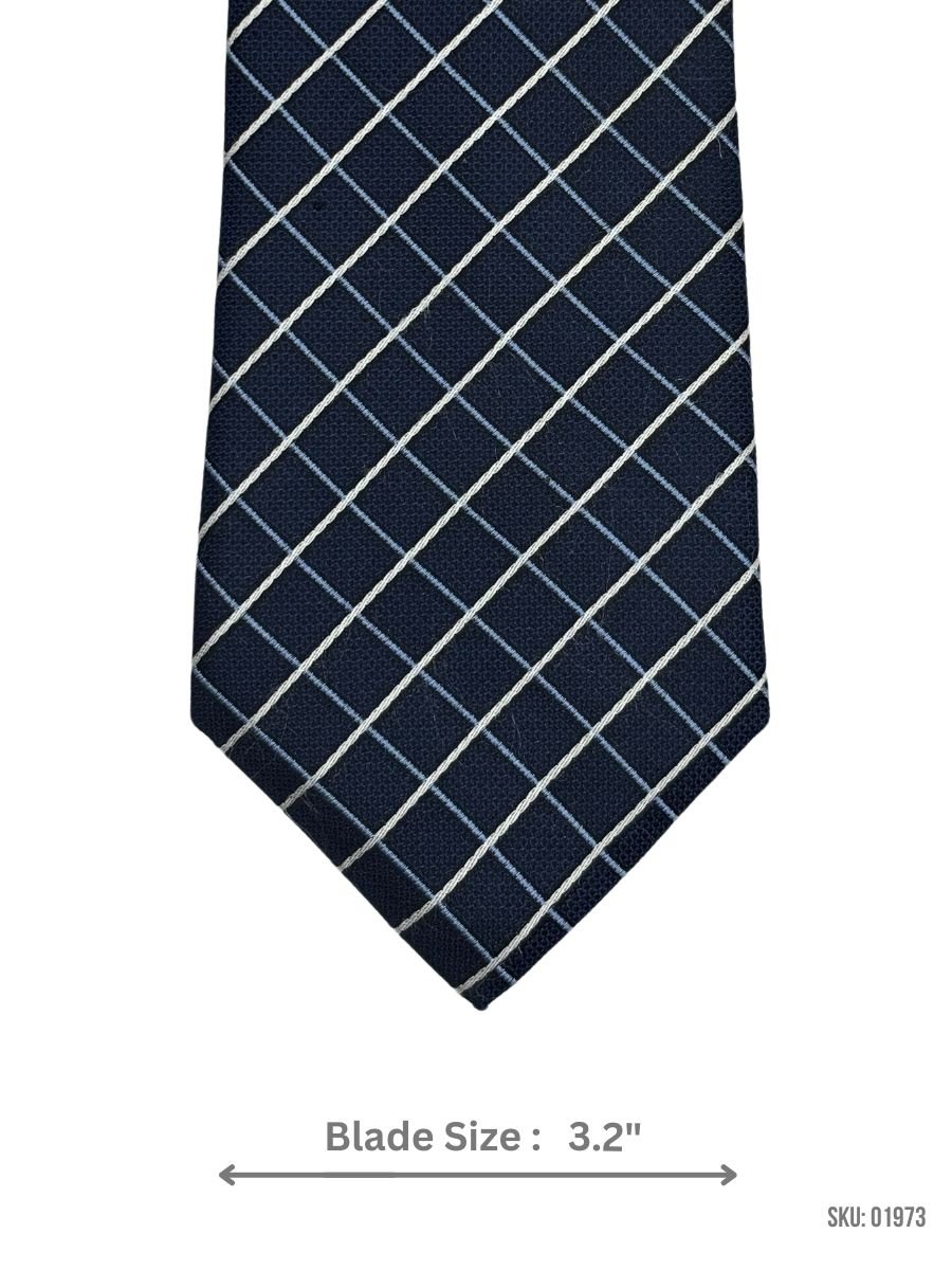 This navy tie is designed with a subtle white windowpane pattern, offering a minimalist and stylish look. The 3.2-inch blade width provides a contemporary fit, suitable for both business and casual occasions. Made with high-quality fabric, this tie ensures a polished finish and long-lasting quality.