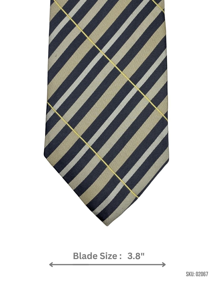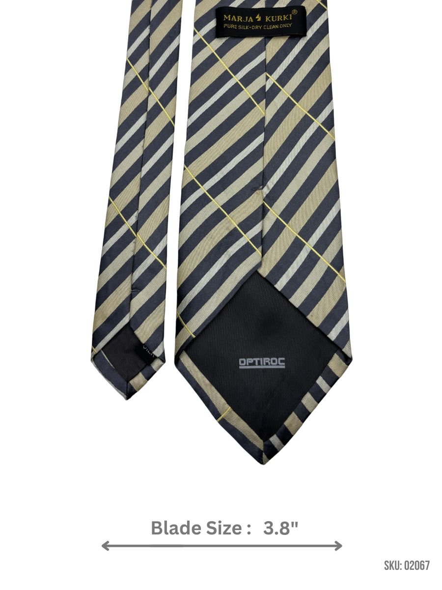 Embrace a contemporary yet timeless style with this olive and yellow striped silk tie. Featuring an intricate diagonal stripe pattern, it perfectly blends subtle tones with bold design. The 3.8-inch blade width adds a modern edge, making it an ideal choice for business meetings, weddings, or any formal occasion. Crafted from high-quality silk, it ensures a refined touch to complement any suit.
