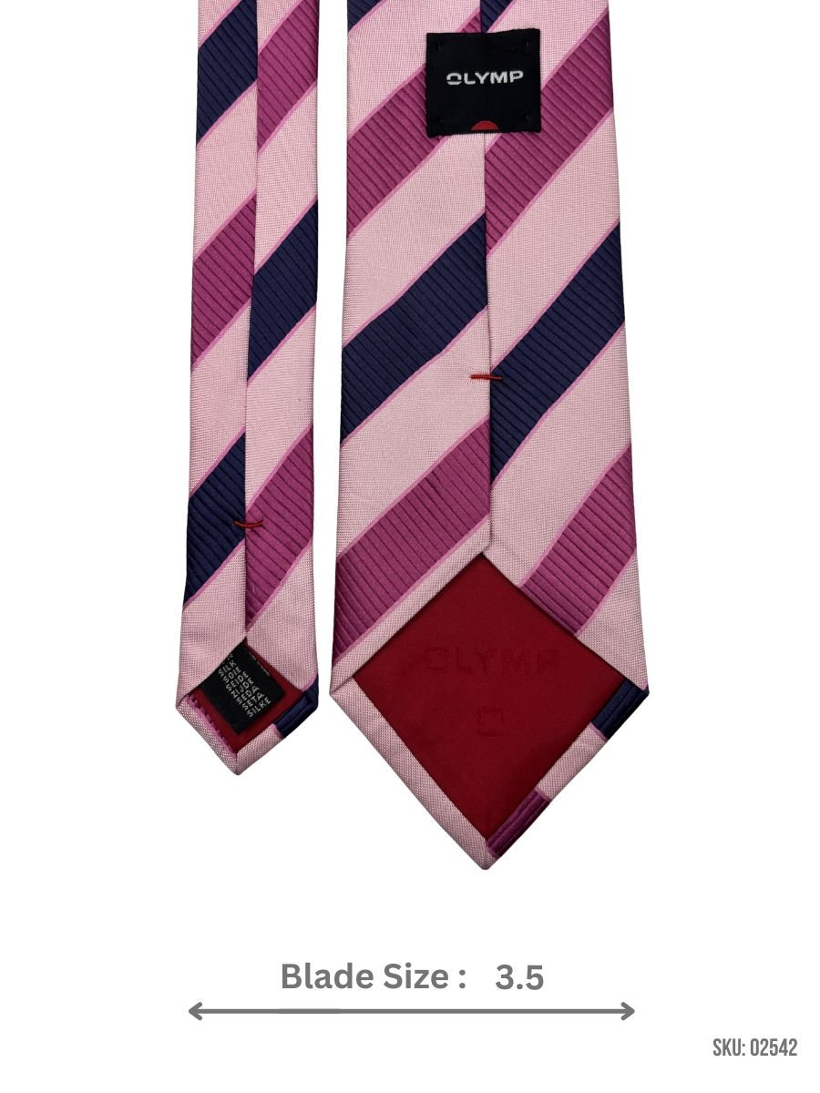 Stylish pink tie with navy stripes, offering a modern twist on a classic design.