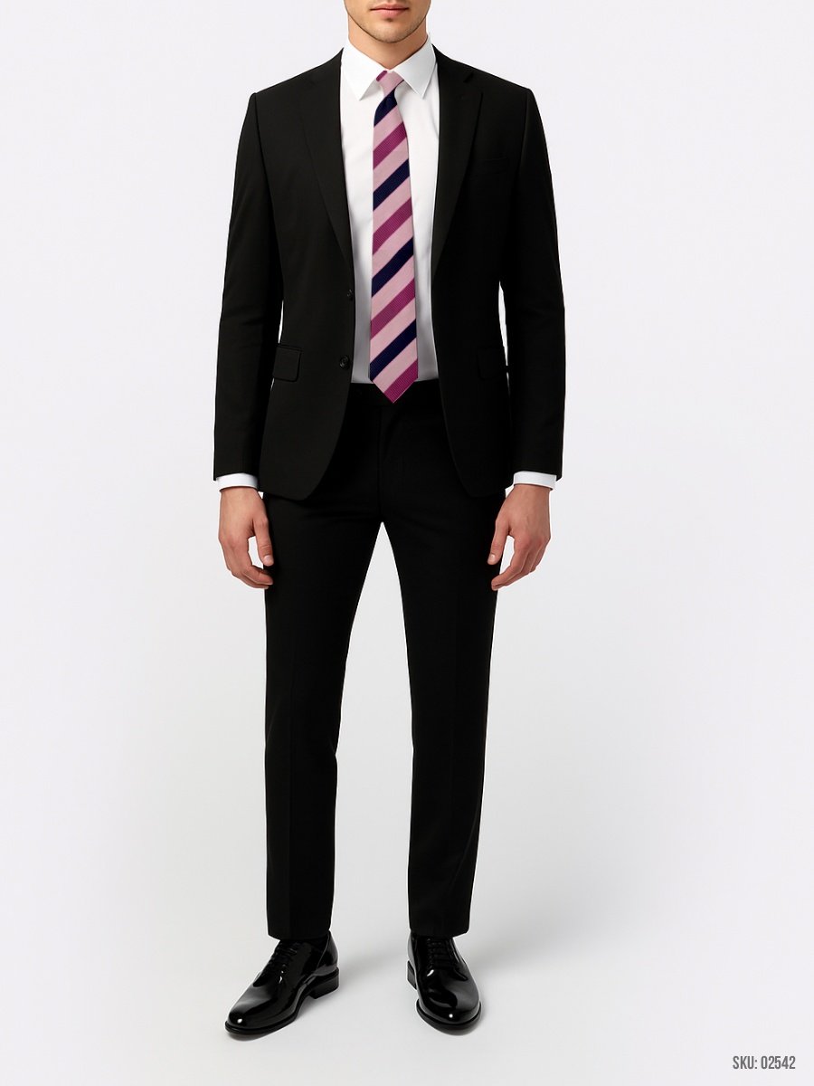 This pink and navy striped tie features bold lines that make it a standout accessory for both professional and semi-formal events.