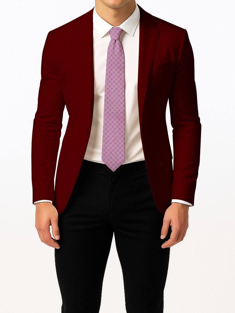 This pink tie features evenly spaced blue and white polka dots that add charm without overpowering the design. Ideal for office wear, events, and modern formal styling.