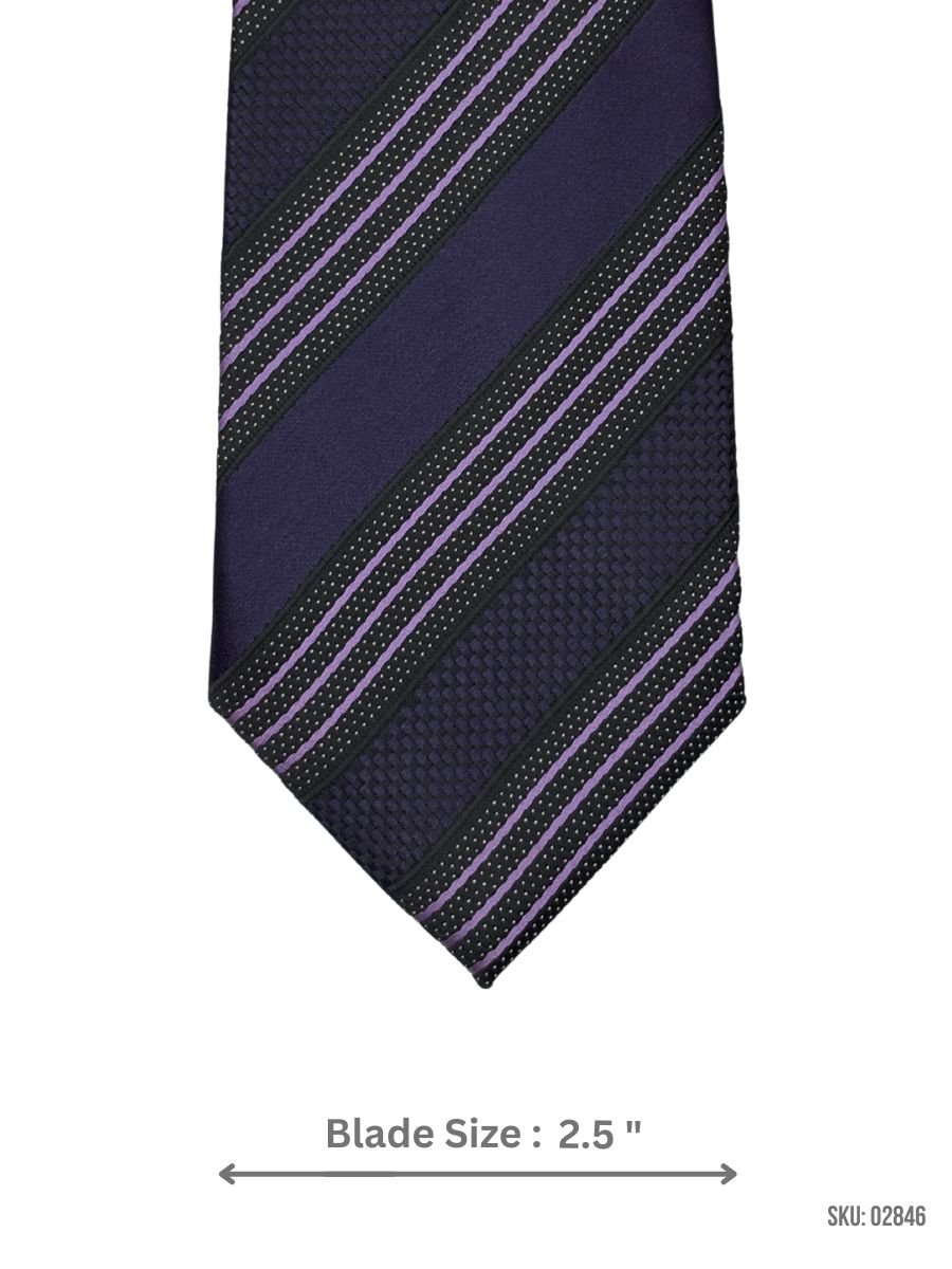 This purple tie incorporates multiple diagonal stripe textures with purple accents, creating depth and modern character. Ideal for formal occasions and refined professional looks.