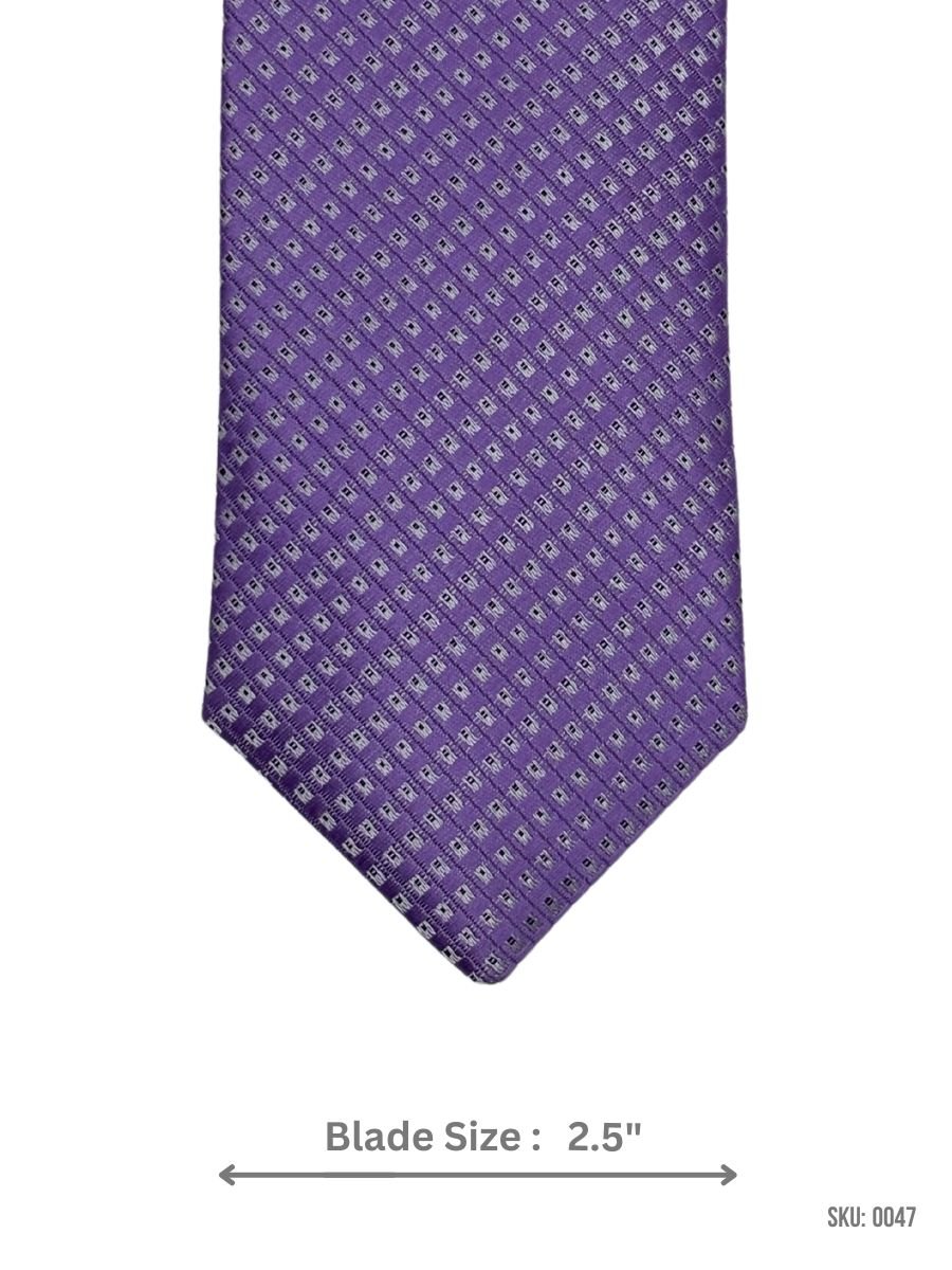 Upgrade your look with this stylish purple slim tie. The blade is 2.5 inches wide, giving it a modern and sharp appearance. It has a small check pattern that looks great for both formal and casual events. Made from high-quality fabric, this tie feels smooth and lasts long. It also includes a matching pocket square, making it perfect for weddings, parties, or work. Add this classy tie to your collection today!