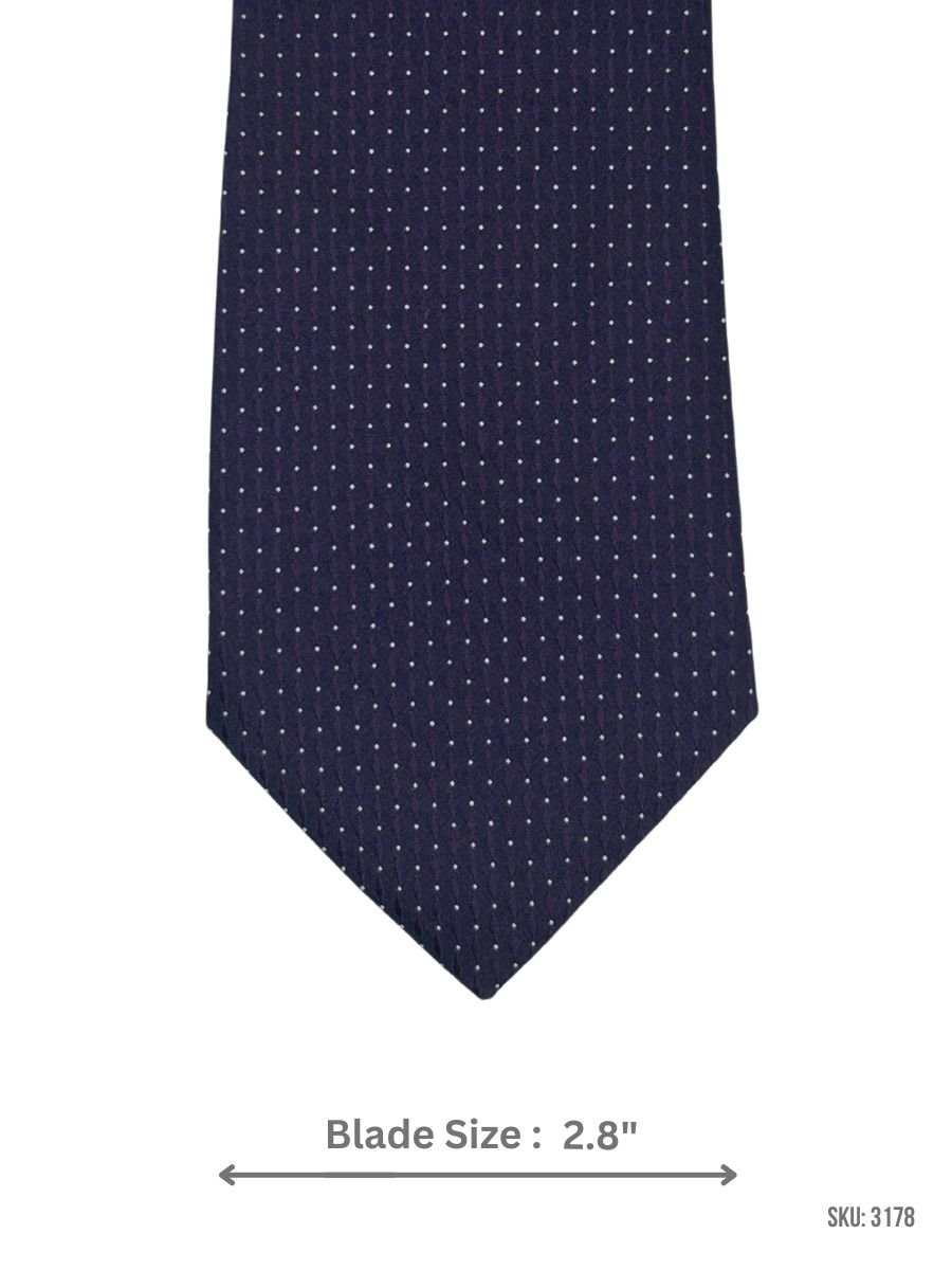 A classic purple tie finished with neat white pin dots for subtle contrast and easy styling. Ideal for office wear, meetings, and formal occasions with solid shirts.