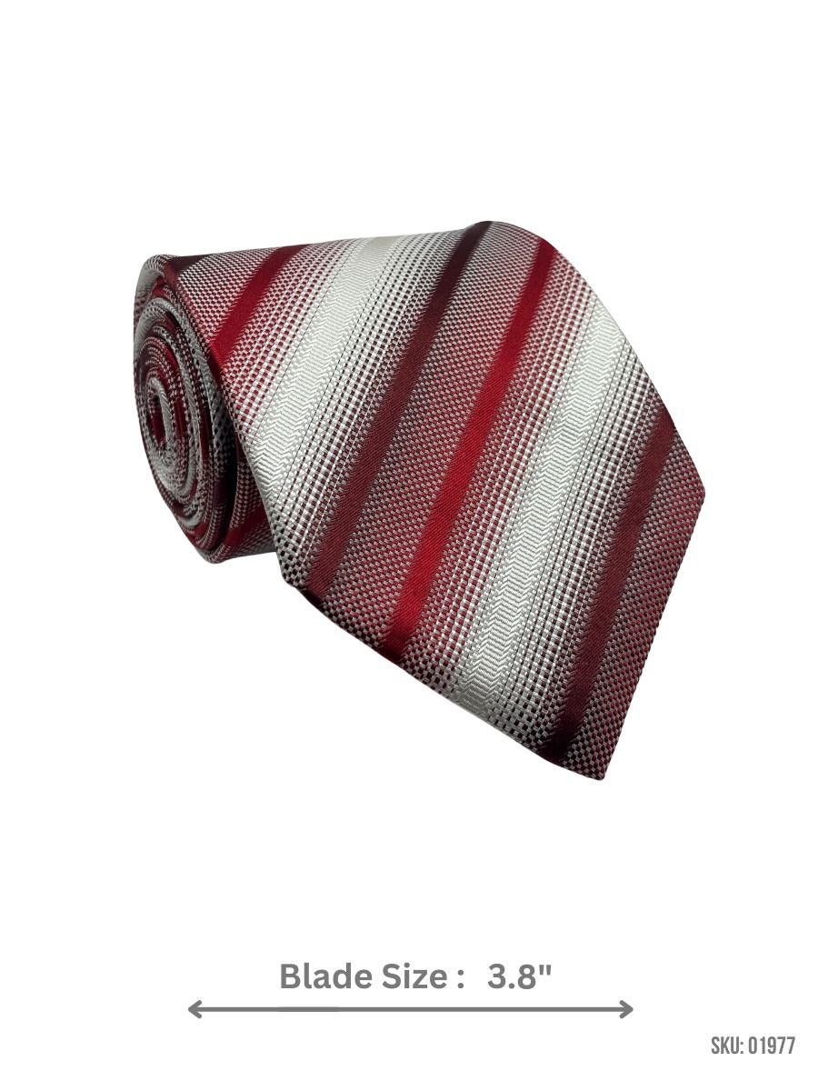 This red and white tie features bold diagonal stripes, blending classic design with modern elegance. The 3.8-inch blade ensures a traditional fit, ideal for weddings, formal events, or office wear. Crafted from premium materials, this tie delivers comfort, durability, and a polished finish that stands out.