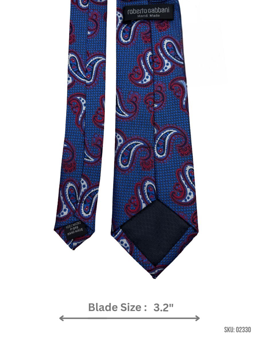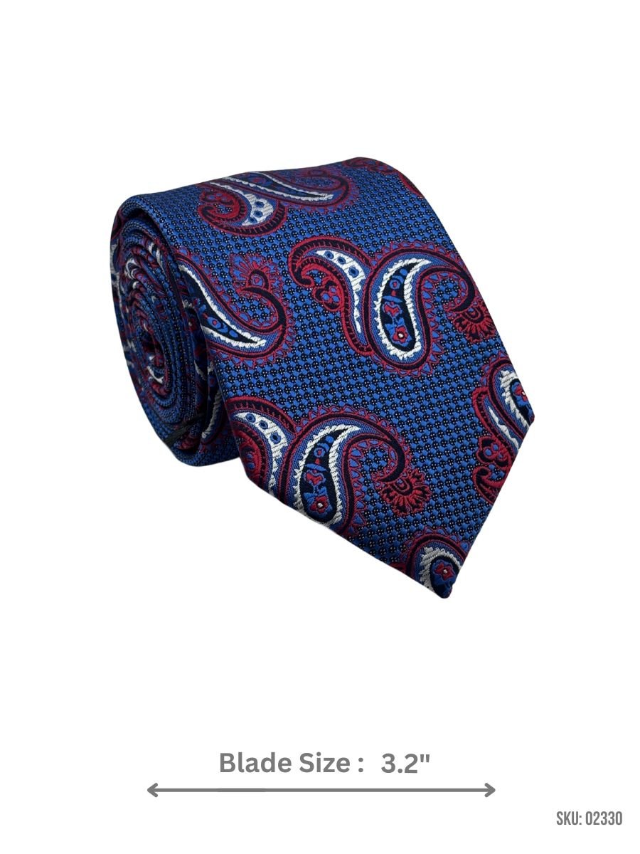 A luxurious Royal Blue Paisley Tie with Red and White Accents, featuring intricate detailing for a bold yet refined look.