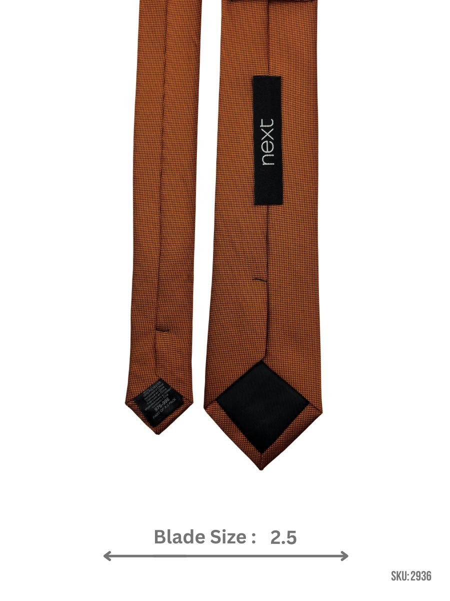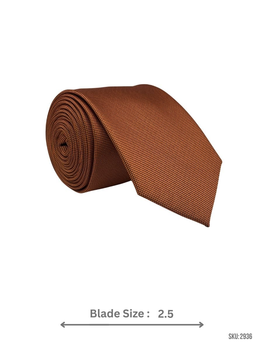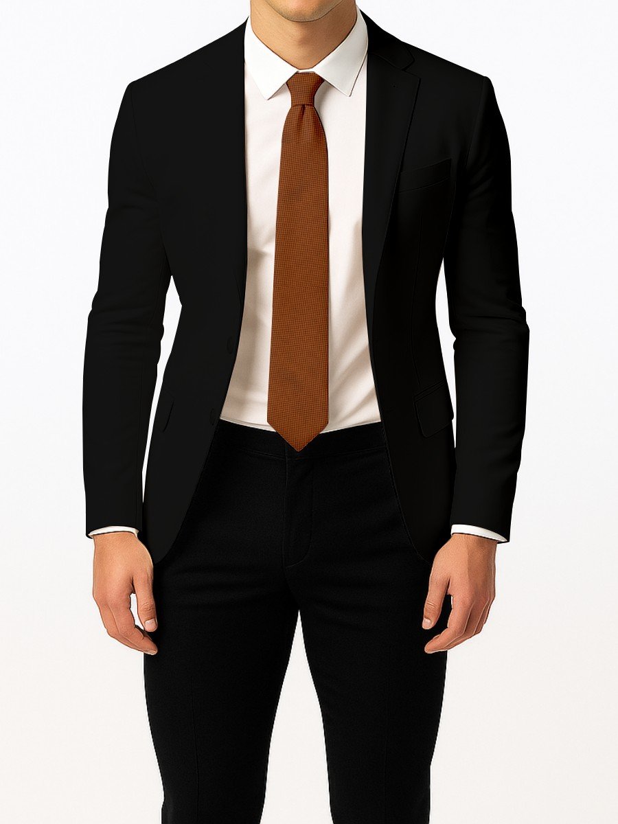 This micro‑check tie delivers a rich rust orange tone paired with fine black detailing, giving it a textured and sophisticated formal look.