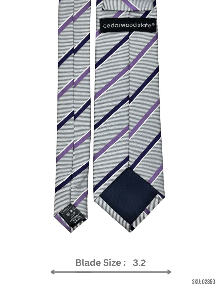 Silver Grey Tie with Purple & Navy Diagonal Stripes