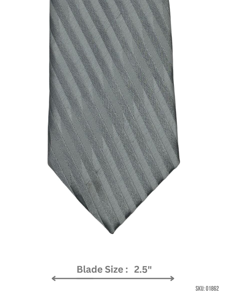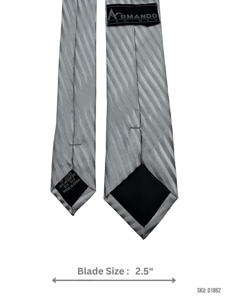 A sleek silver tie featuring a subtle diagonal textured pattern and a 2.5-inch blade. Perfect for formal events or business meetings.