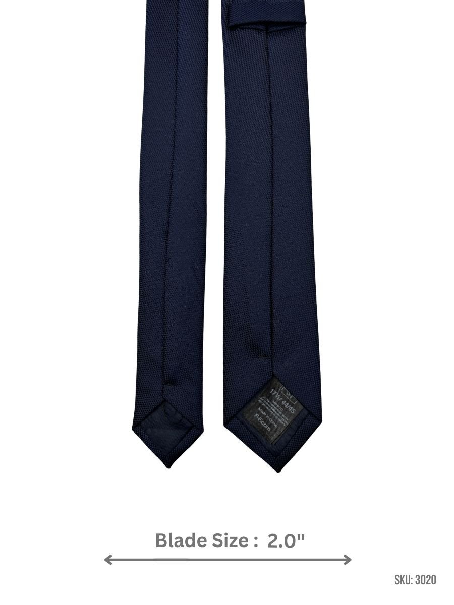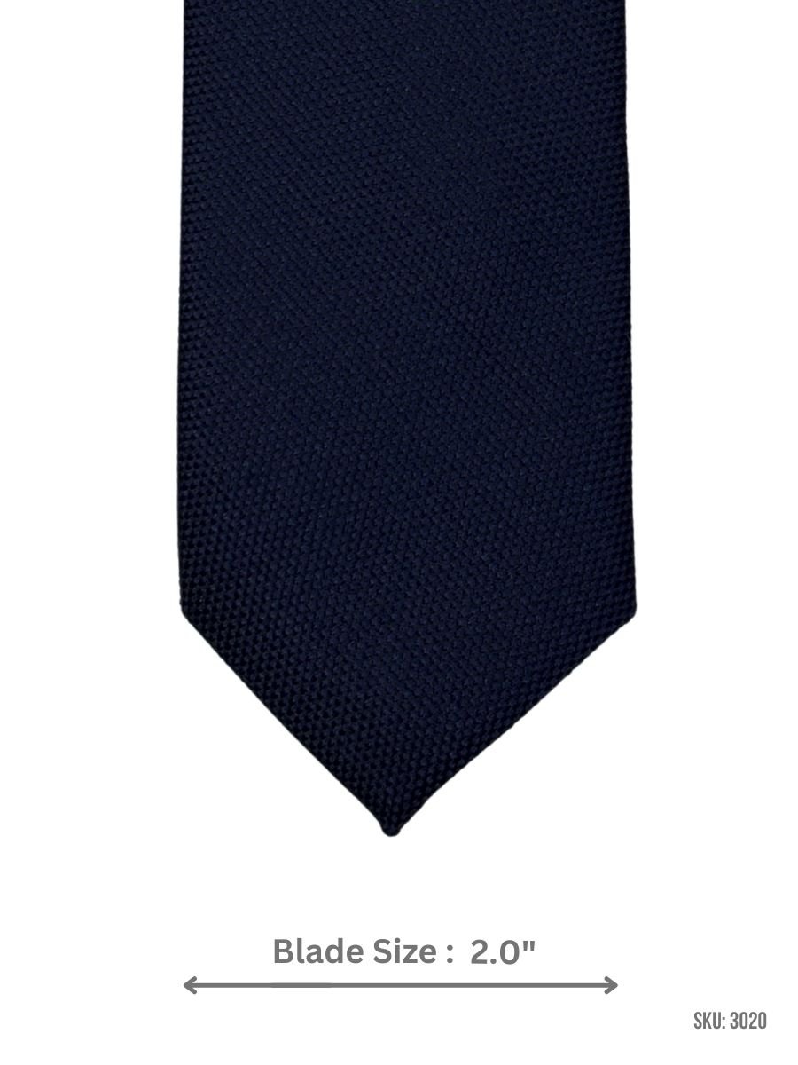 This solid navy tie features a subtle micro-textured weave that adds quiet detail while keeping the overall style clean and professional. A dependable option for business wear and formal occasions, it pairs effortlessly with classic shirts and suits in navy, charcoal, or black.