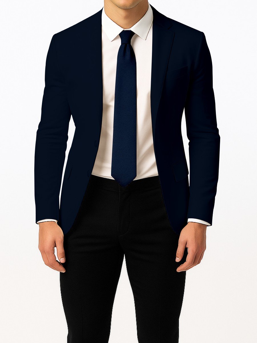 This solid navy tie features a refined ribbed weave that adds depth while keeping the style minimal and professional. A versatile essential for office wear, interviews, and formal occasions, it pairs effortlessly with white, light blue, and grey shirts.