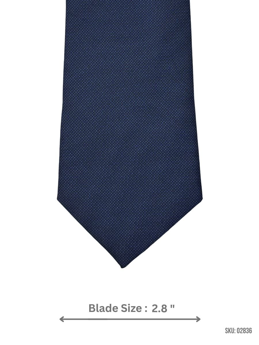 A solid navy blue tie finished with a fine textured weave.