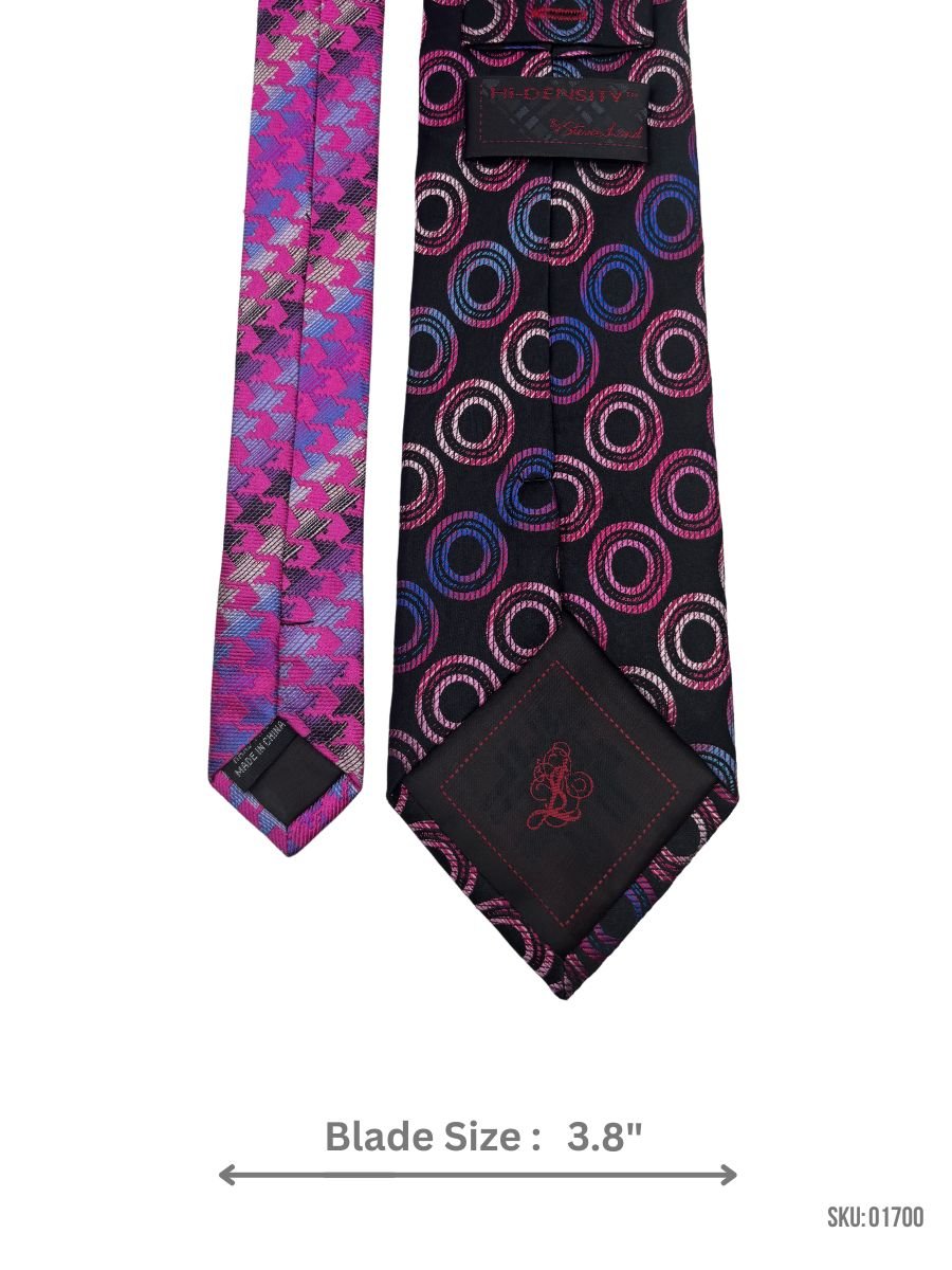 Stand out in style with this eye-catching circle-patterned tie. Its unique design and bold colors add a modern twist to your formal attire. With a 3.8″ blade width, this tie offers a classic fit that’s perfect for weddings, events, and office wear.