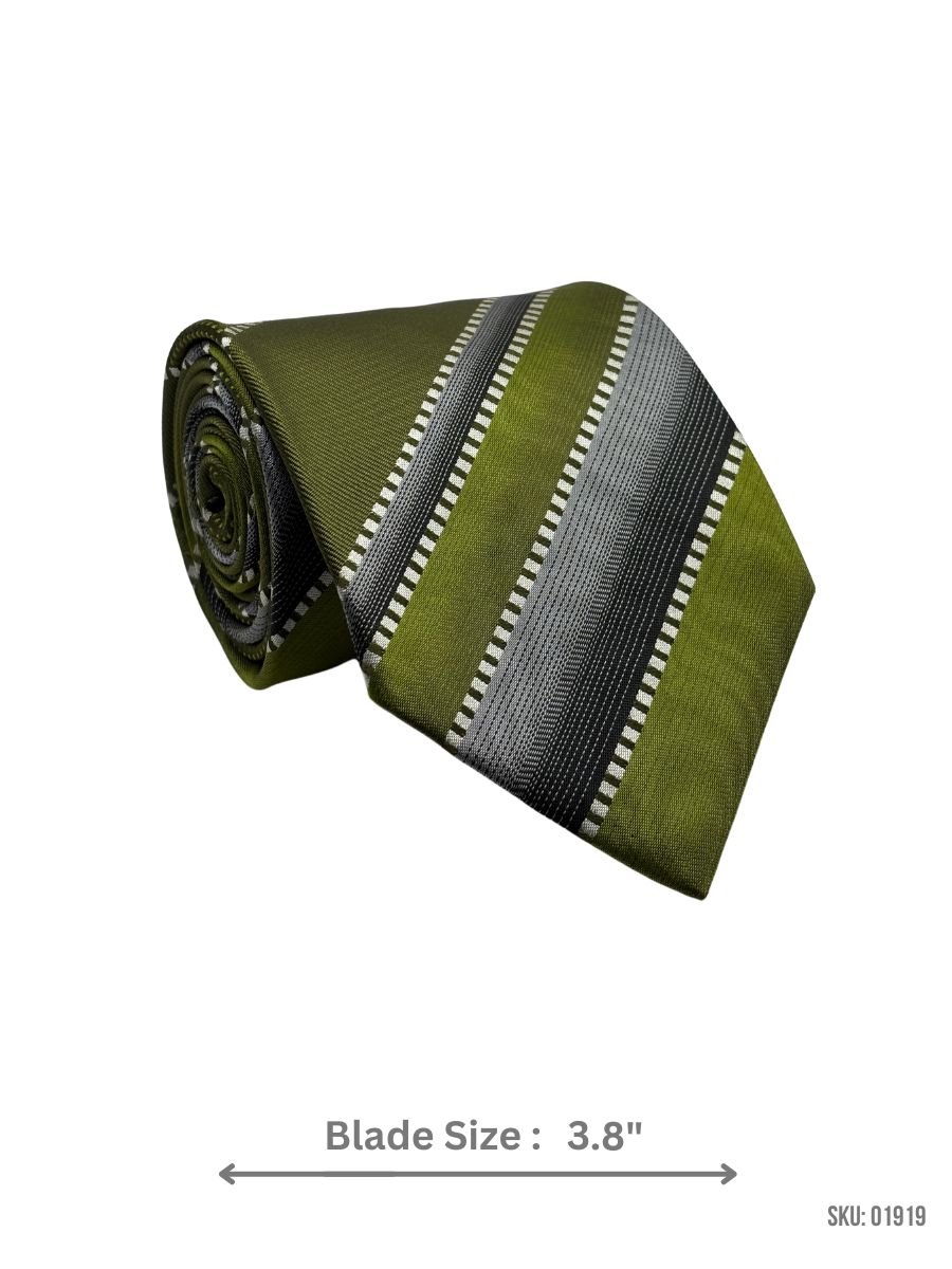 Featuring striking green stripes, this tie is a bold choice for those who want to make a statement. The 3.8″ blade width ensures a classic silhouette, making it a versatile piece for both formal and semi-formal occasions. Made from high-quality fabric, this tie guarantees durability and a polished finish.