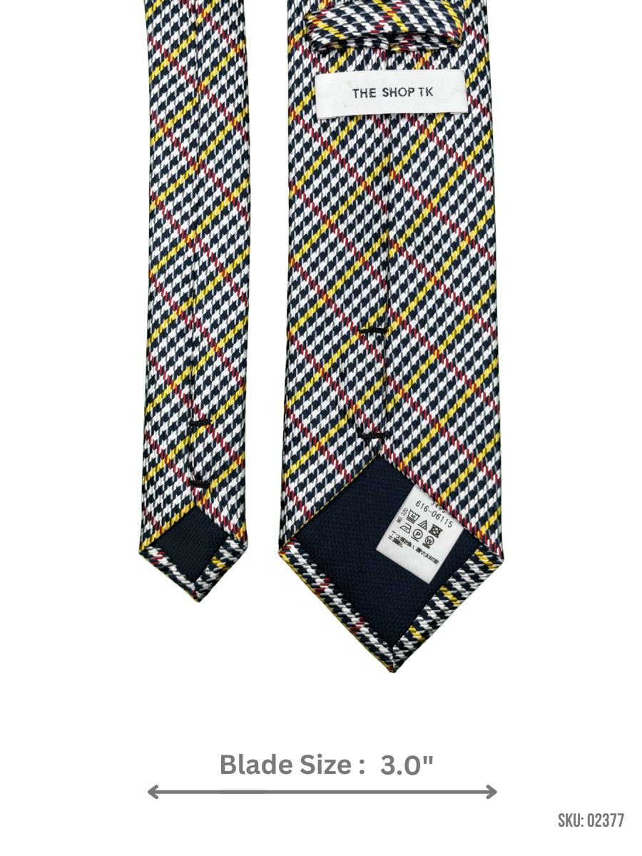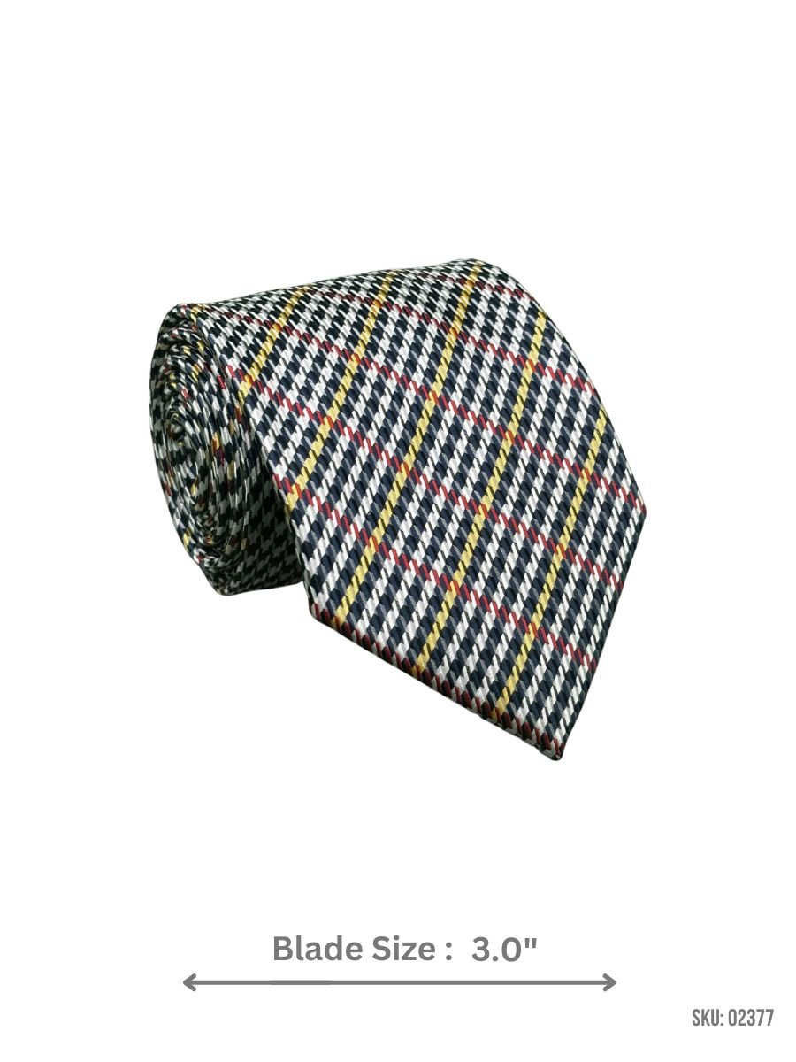 A bold plaid design featuring navy, red, and yellow stripes, this tie with a 3.0″ blade size adds personality and elegance to your formal wardrobe.