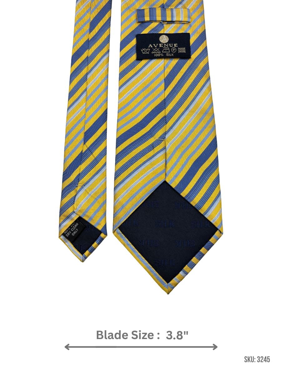 Yellow Tie with Navy Blue and Light Gray Diagonal Stripes