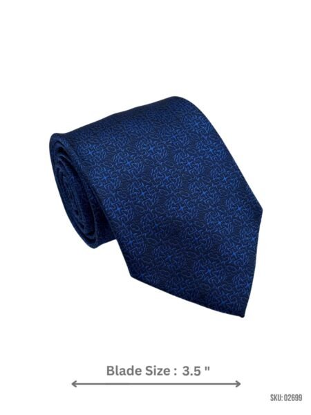 Navy blue tie with a geometric pattern, ideal for adding a modern touch to business and formal attire.