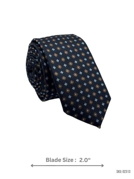 A sleek navy tie with a floral pattern, perfect for both formal and semi-formal occasions.