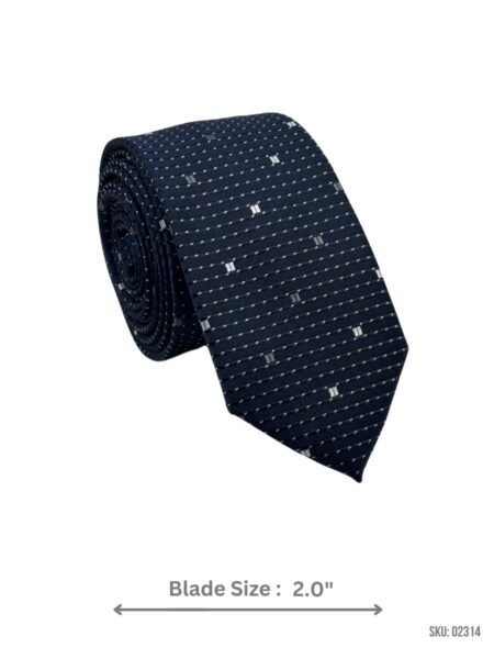 A stylish navy tie with a modern geometric pattern, perfect for adding a touch of class to any look.